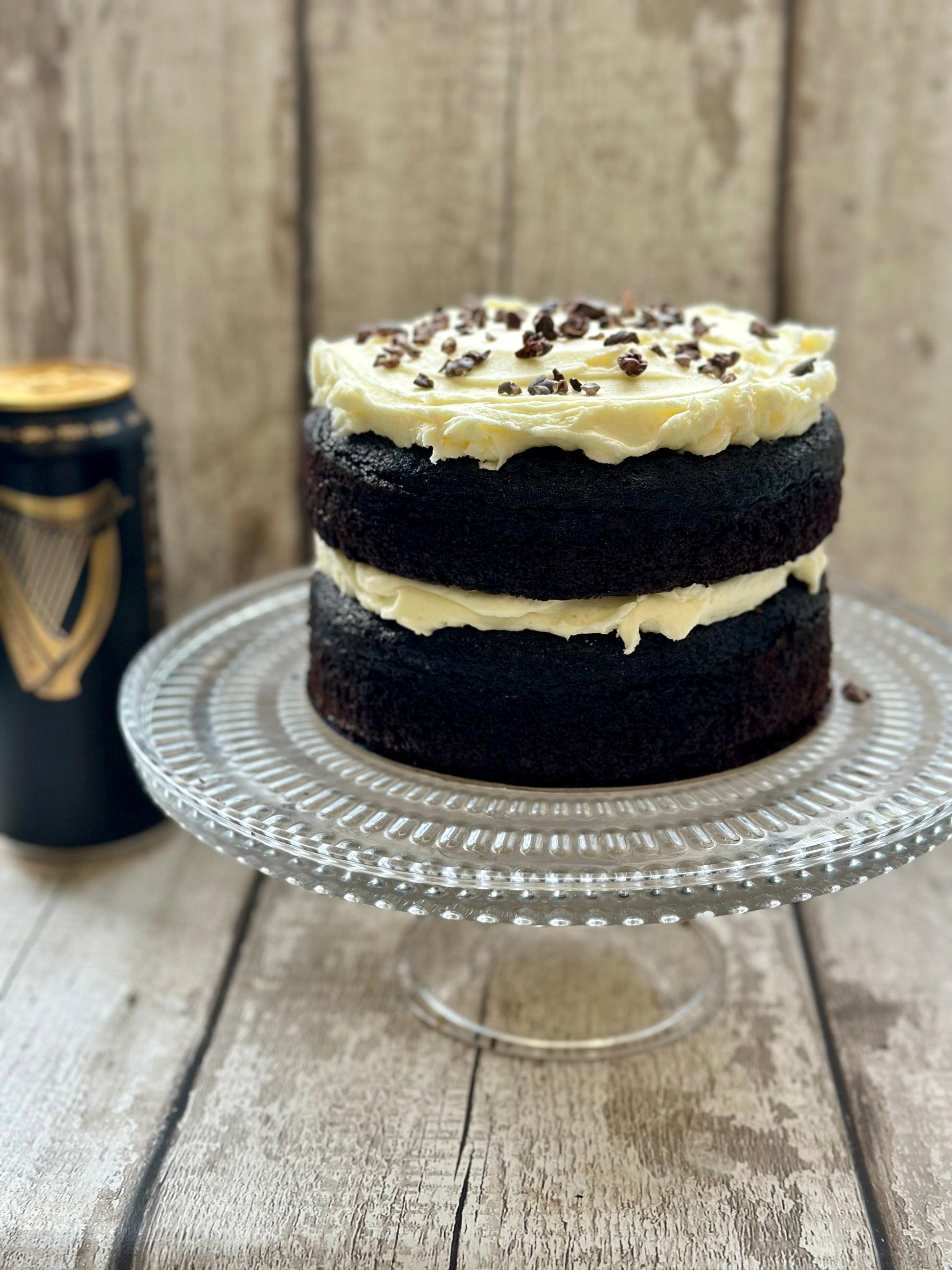 Round Chocolate Guinness Cake. Small serves 6-8 people. Large serves 18-21 people.